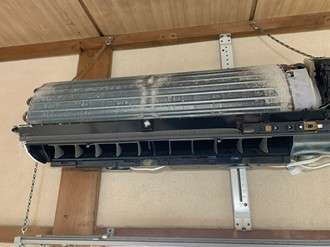 今でも、よく見かけるお掃除機能のついていないシンプルなエアコンです。20年以上は経過しています。和室に設置されていて、リビングのエアコンに比べると圧倒的に使用頻度・使用時間は短いです。